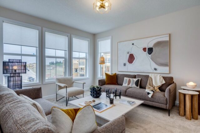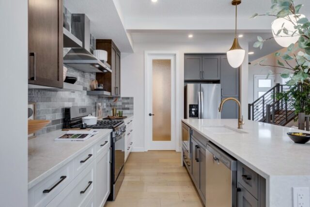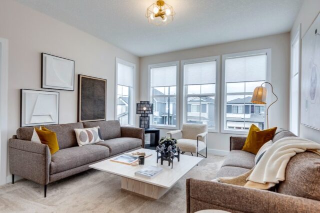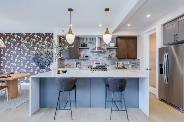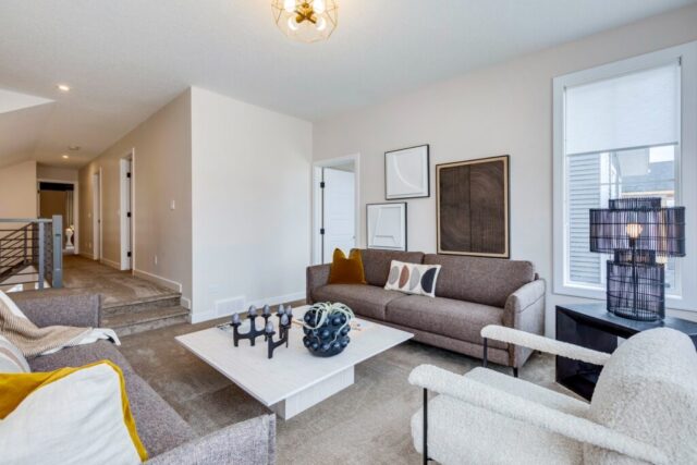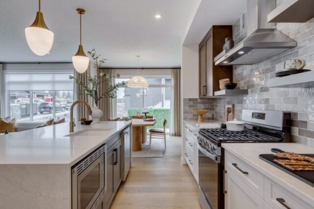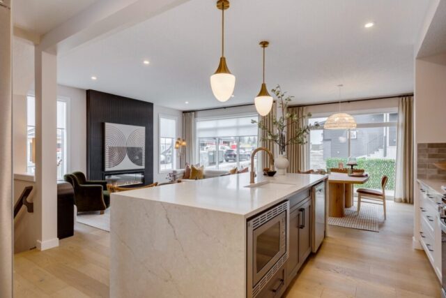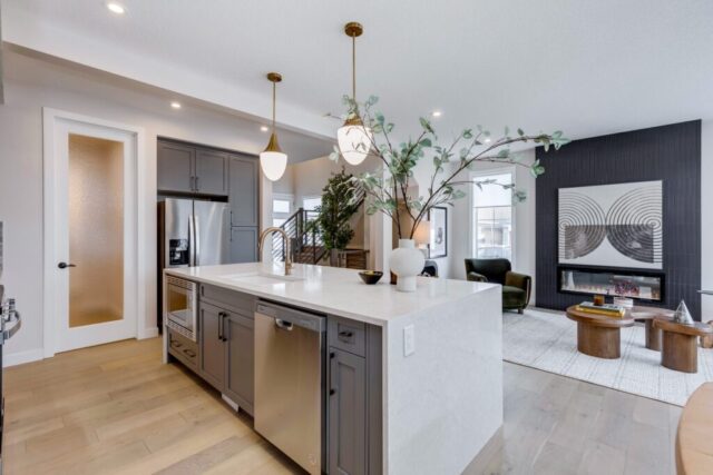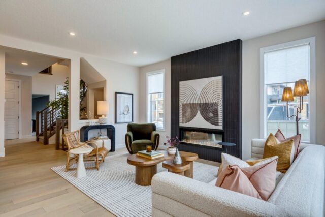 Our homes include high-quality finishings such as hardwood floors, quartz countertops, 8-foot doors on the main floor, 9-foot ceilings on the main floor, a stainless steel appliance package, upgraded lighting, and a fireplace. Each of our planned models are styled and finished individually by our team of designers.